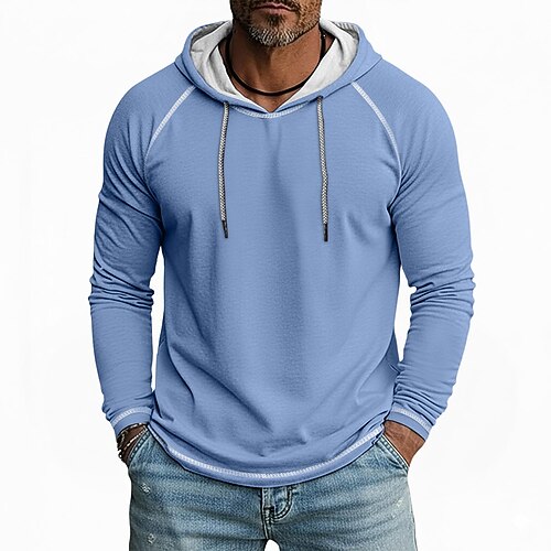 Per uomo Maglietta Felpa con Cappuccio Manica Lunga Con Cappuccio Inverno Primavera Autunno Tutte le stagioni Tinta unica Maglieria Quotidiano Sportivo Con cappuccio All'aperto Casual Casuale Blu