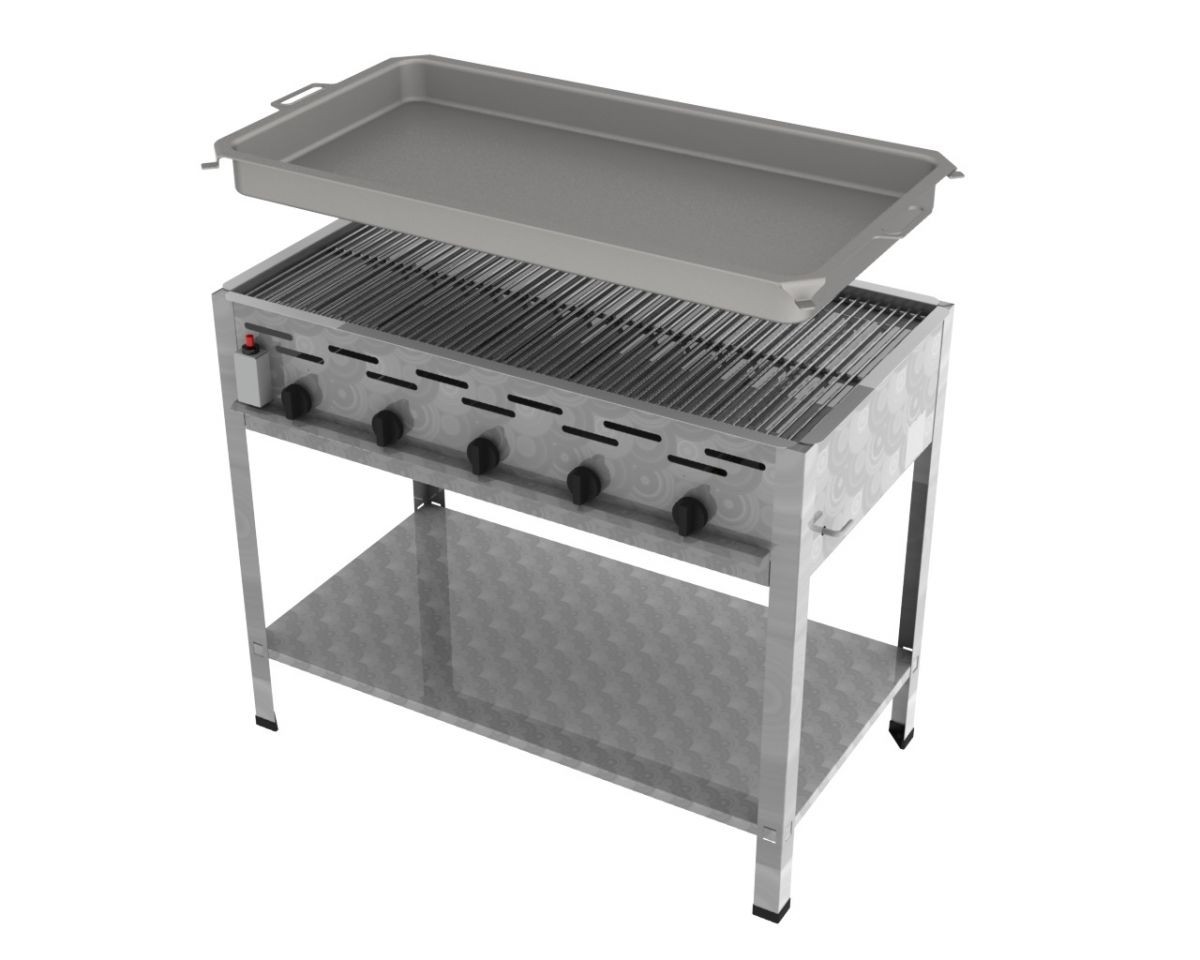 ChattenGlut Professional Gastrobräter 5-flammig Standgerät 18,0kW und Rost und Pfanne