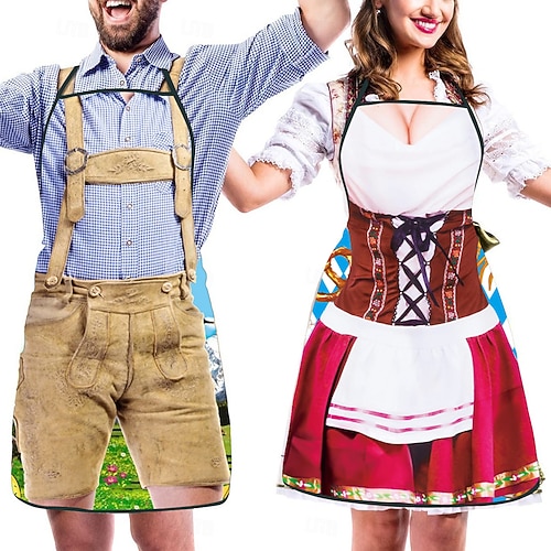 Carnevale Birra Oktoberfest 2 Pezzi Grembiule Costumi Divertenti Cameriera Coppia Oktoberfest Monaco di Baviera Wiesn Prati Coppia Per uomo Per donna Carnevale Festa della birra Panno in stile
