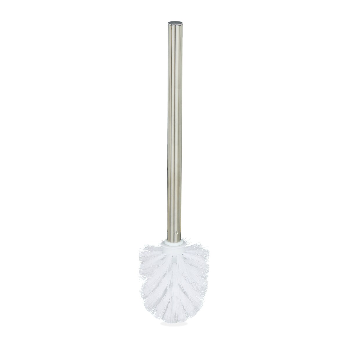 Relaxdays Toilettenbürste, 3er Set, WC-Bürste, Ersatz, abnehmbarer Bürstenkopf, Klobürste Edelstahl, HxD 35 x 8 cm, weiß
