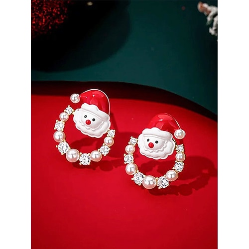 orecchini da donna a forma di albero di Natale – materiale in lega con perle e diamanti, perfetti per feste e occasioni festive