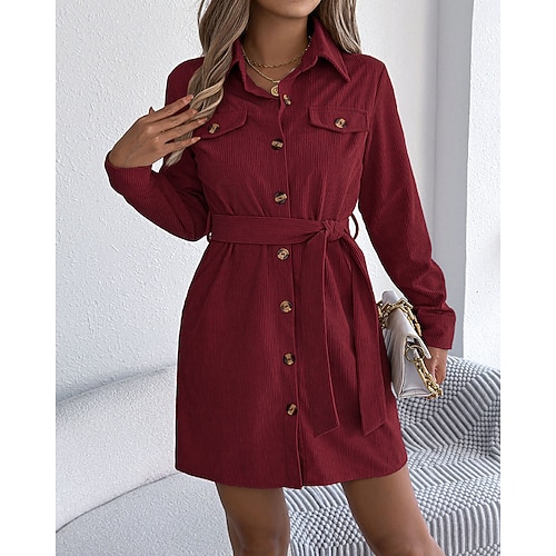 Per donna Mini Abito Abito Camicia Moda Moderno Quotidiano Ufficio Ferie Vestibilità regolare Semplice Manica Lunga Colletto a Camicia Nero Vino Cachi Primavera Autunno Inverno