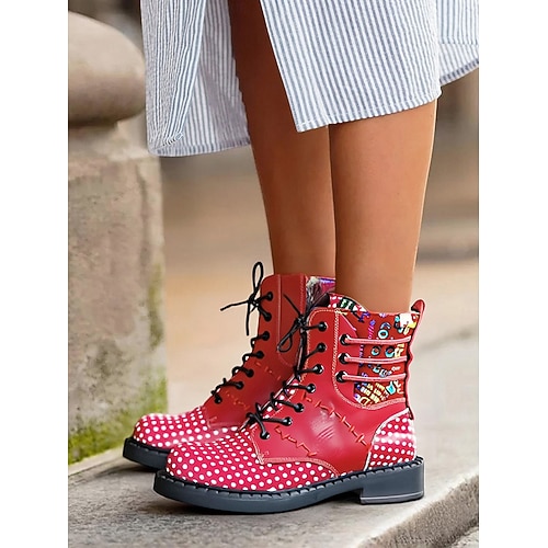 stivaletti da donna con lacci a pois verdi - stivali casual in pelle con stampa decorativa e cerniera laterale, ideali per le feste di San Patrizio, le gite al mercato, gli incontri informali e le commissioni quotidiane