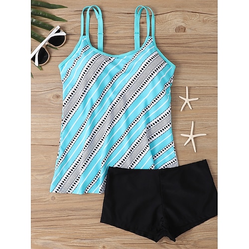 Costume da Bagno Due Pezzi da Donna Tankini Pantaloni Palma Controllo Pancia Alta Vita Slim Senza Schienale Vacanza Spiaggia Fiori Colore Blocco U Collo Senza Maniche