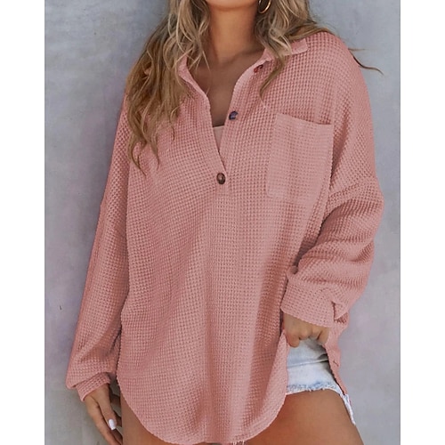 Per donna Blusa Tinta unica Elegante Casual Manica Lunga Con Cappuccio Top Regolari Quotidiano Patchwork Bottoni Nero Bianco Rosa Grigio Primavera Autunno Inverno