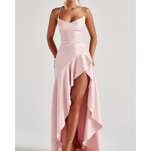 Per donna Abito Lungo Maxi Abito Abito in Raso Abito da laurea Vestito da Festa Abito da Cocktail Elegante Moderno Festa serale Feste Occasione speciale Taglia piccola Semplice Senza Maniche