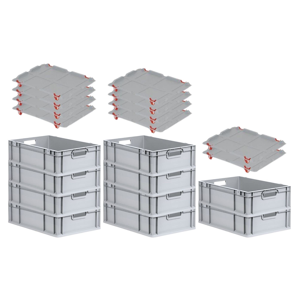 PROREGAL SparSet 10x Eurobox NextGen Economy mit Auflagedeckel & 4x Verschlüsse Rot, Griffe offen, HxBxT 17x40x60cm, 34L, Eurobehälter, Box
