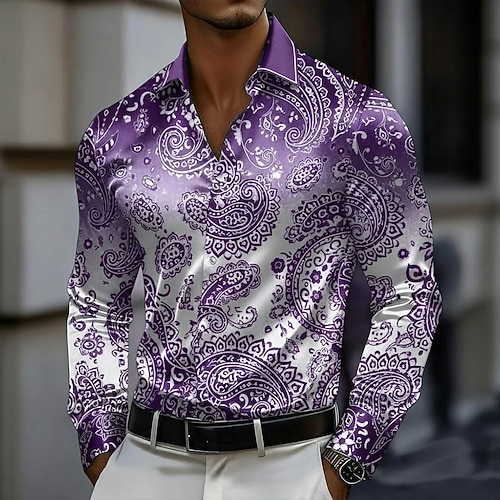 Per uomo Paisley Stampa Floreale Colore sfumato Camicia Camicia in raso Camicia elegante Manica Lunga Vintage Retrò Vacanza Abbigliamento Quotidiano Estate Primavera Autunno Collo ripiegato Stampa 3D