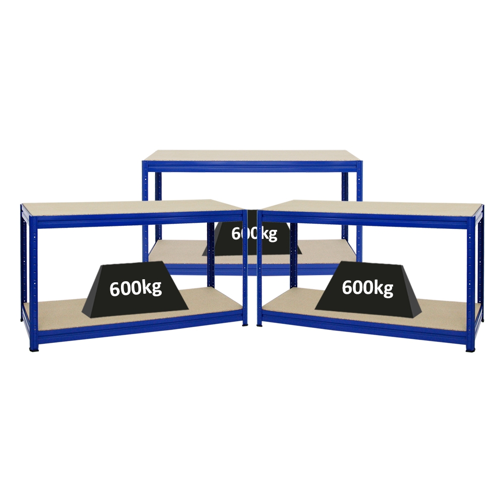 PROREGAL Mega Deal | 3x Höhenverstellbare Werkbank Dino | HxBxT 90x160x60 cm | Traglast 600 kg | Blau | Holzplatte