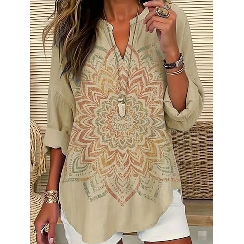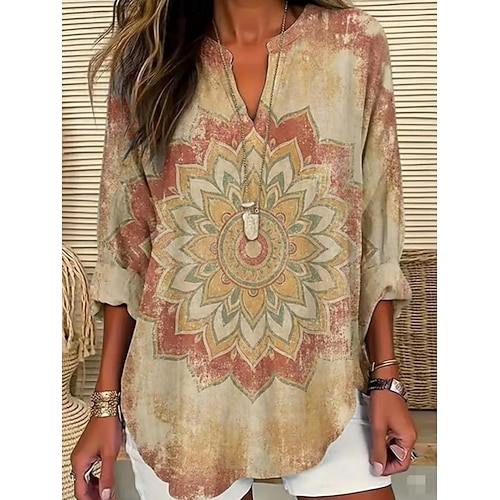 Per donna Camicia Tunica Grafico Fiore Bohemien Vintage Quotidiano Manica Lunga Scollo a V Top Regolari Quotidiano Ferie Stampato Giallo Cachi Estate Primavera Autunno