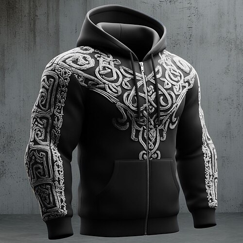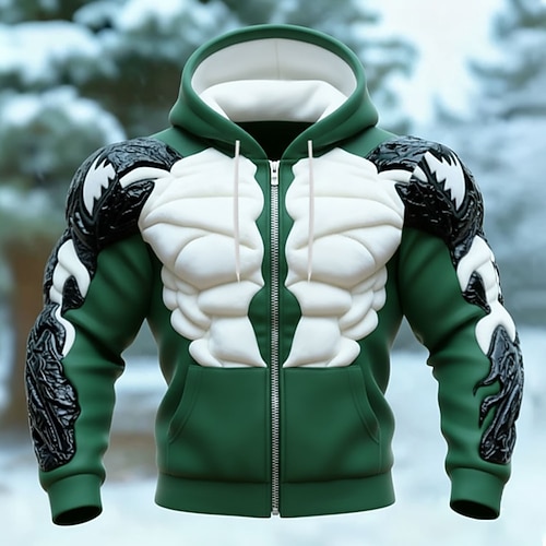 Per uomo Muscolo Illusione ottica Felpa con Cappuccio Giacca di pelle Felpa Vichingo 3D Fantasia Stampa su tutta la superficie Manica Lunga Con cerniera Abbigliamento casual alla moda Vacanza Uscire