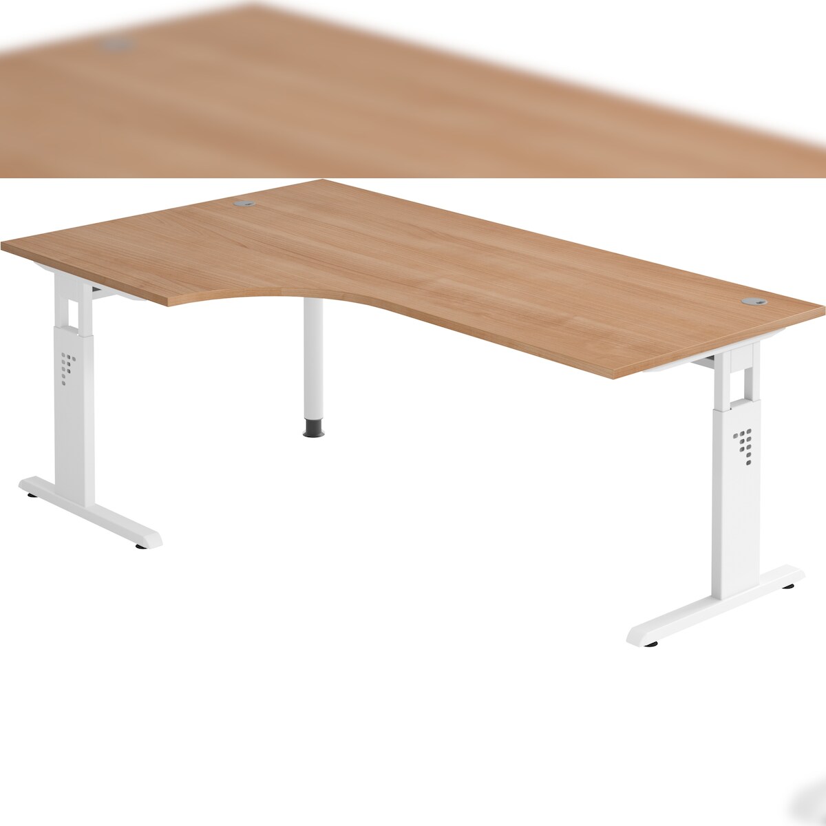 bümö höhenverstellbarer Eckschreibtisch O-Serie 200x120 cm in Nussbaum, Gestell in weiß - Schreibtisch L Form, großer Tisch für's Büro, Computertisch