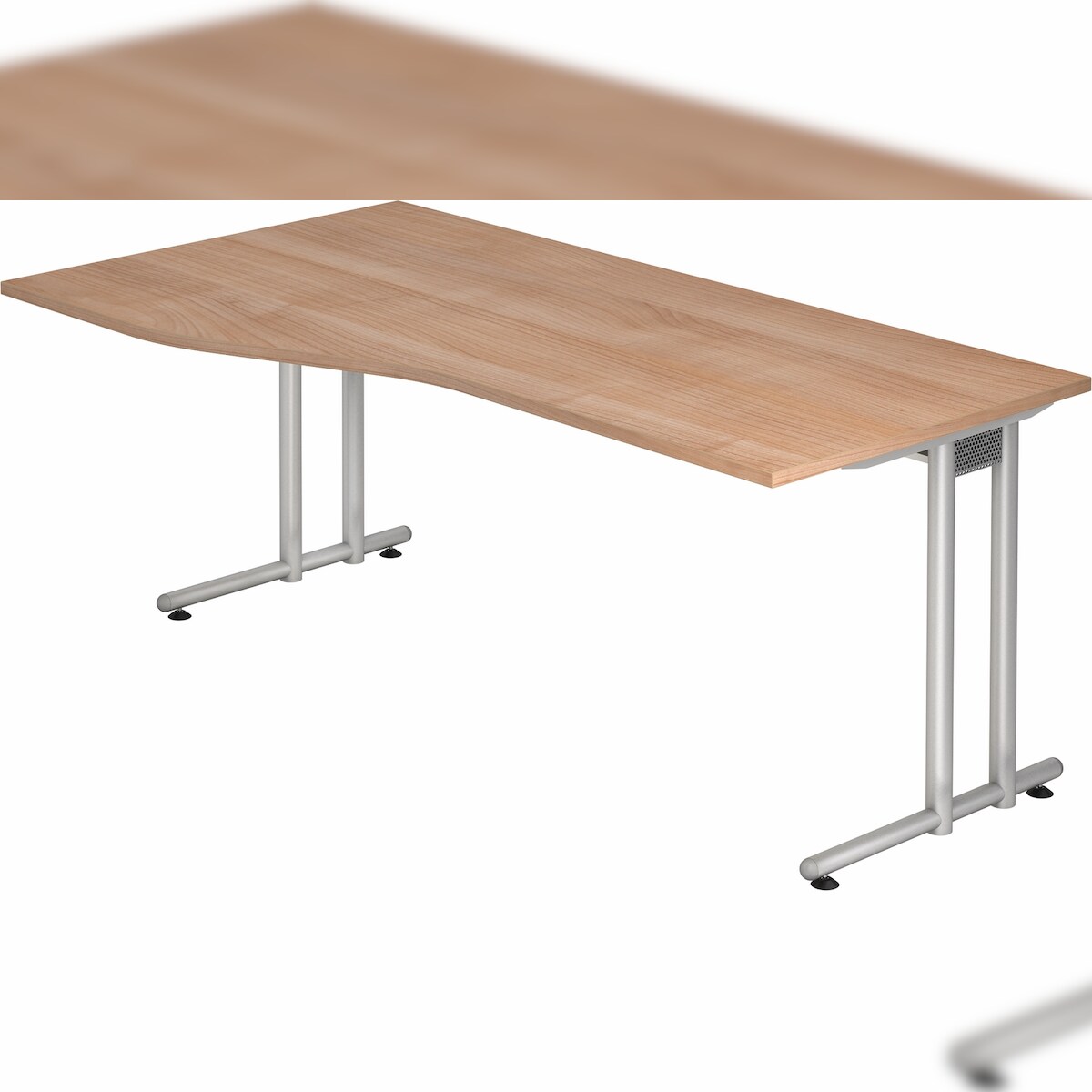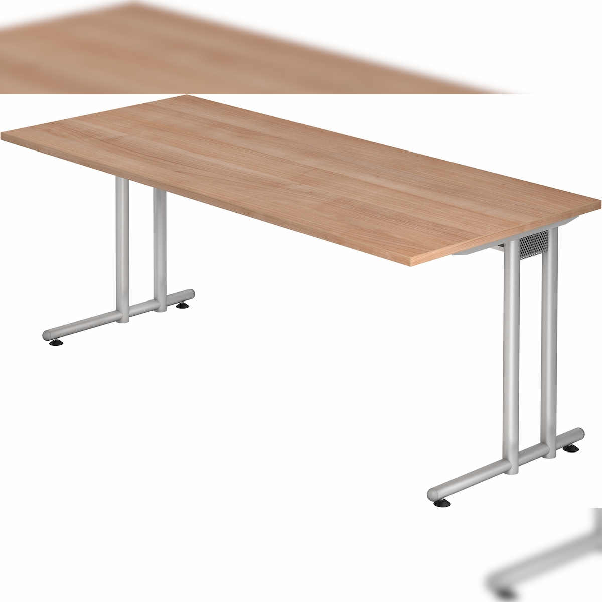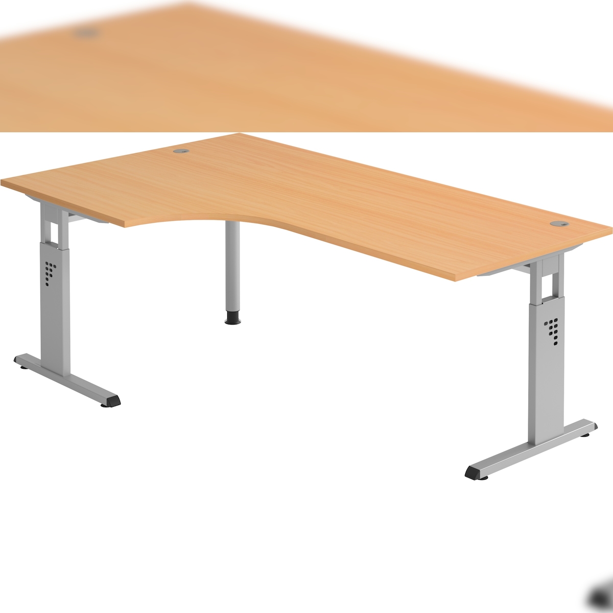 bümö Schreibtisch groß, N-Serie 200x100 cm, Tischplatte aus Holz in Buche, Gestell aus Metall in Silber - PC Tisch, großer Computertisch für's Büro,