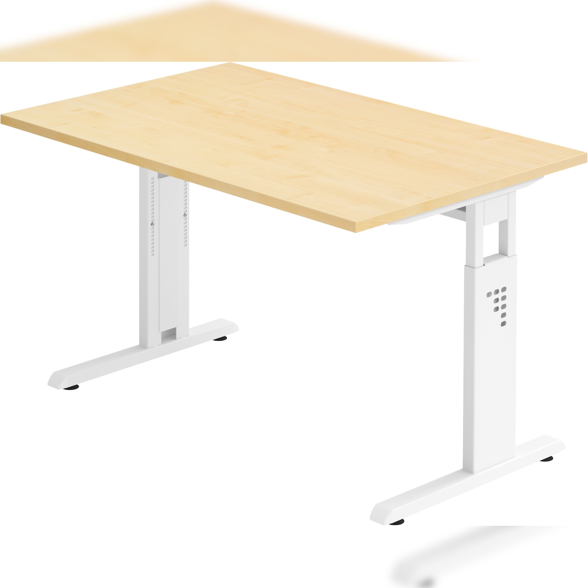 bümö höhenverstellbarer Schreibtisch O-Serie 120x80 cm in Ahorn, Gestell in weiß - PC Tisch klein für's Büro manuell höhenverstellbar, Computertisch
