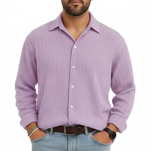 Per uomo Camicia Tessuto Camicia casual Camicia con Bottoni Nero Bianco Verde chiaro Borgogna Blu marino Manica Lunga Semplice Colletto a Camicia Casuale Quotidiano Jacquard Abbigliamento Elegante