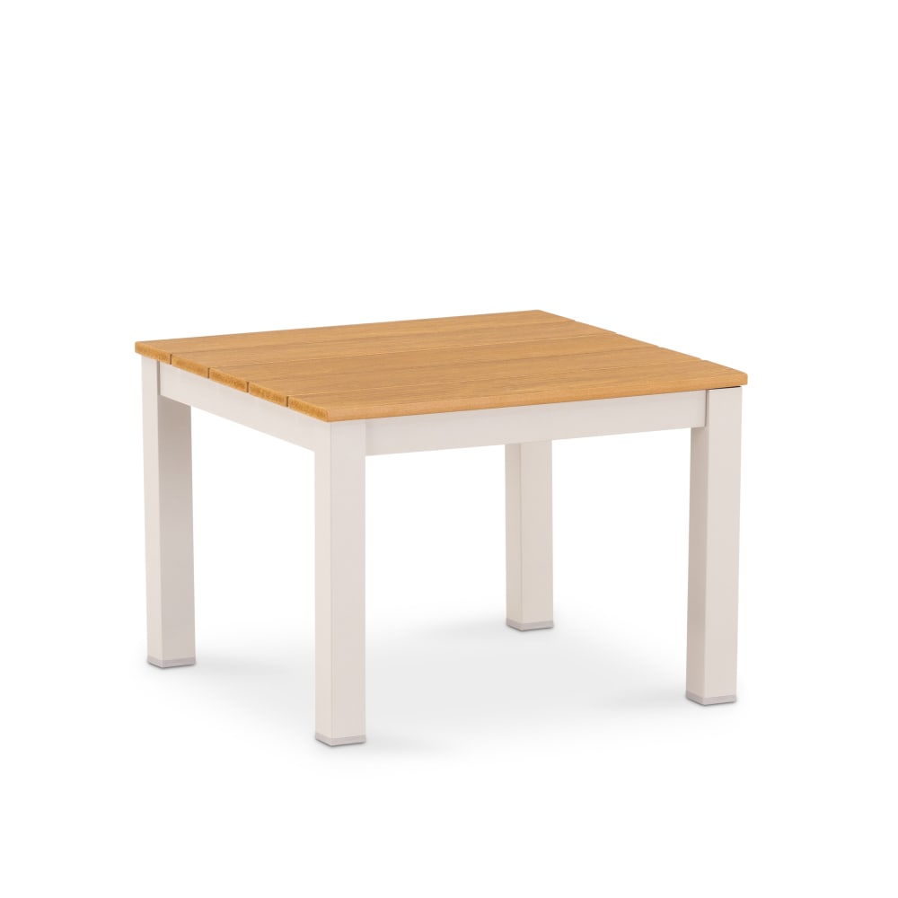 Tavolino da giardino alluminio beige e doghe in imitazione legno