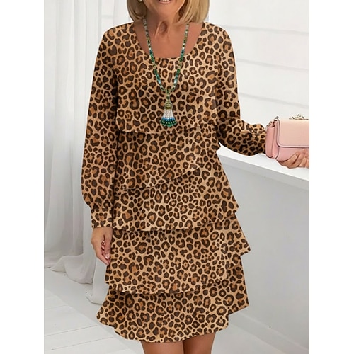 Per donna Mini Abito Vestito Casual Vestito in Chiffon Abito a Tubino Abito a Strati Elegante Moda Moderno Quotidiano All'aperto Weekend Vestibilità regolare Leopardo Manica Lunga Girocollo Leopardo