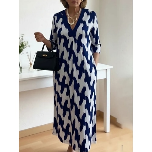 Per donna Vestito maxi Abito casual Moda Informale Da mare Giornaliero Standard Fantasia geometrica Manica a 3/4 A V Nero Vino Viola Verde Estate