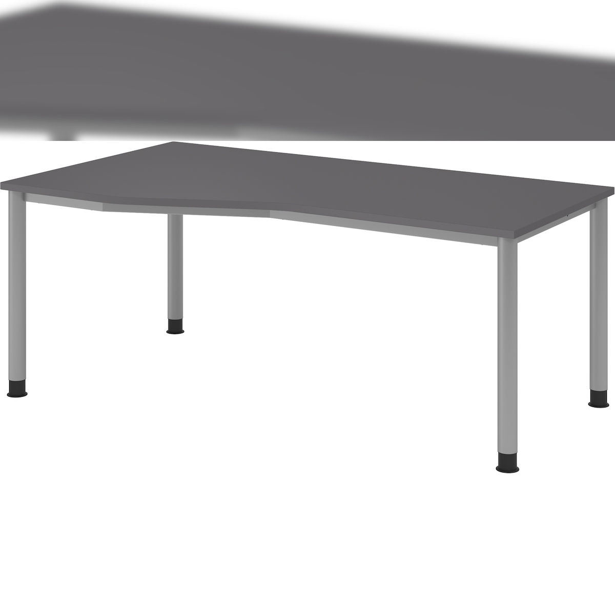 bümö höhenverstellbarer Schreibtisch H-Serie 180x100 cm in graphit, Gestell in Silber - großer PC Tisch für's Büro manuell höhenverstellbar,