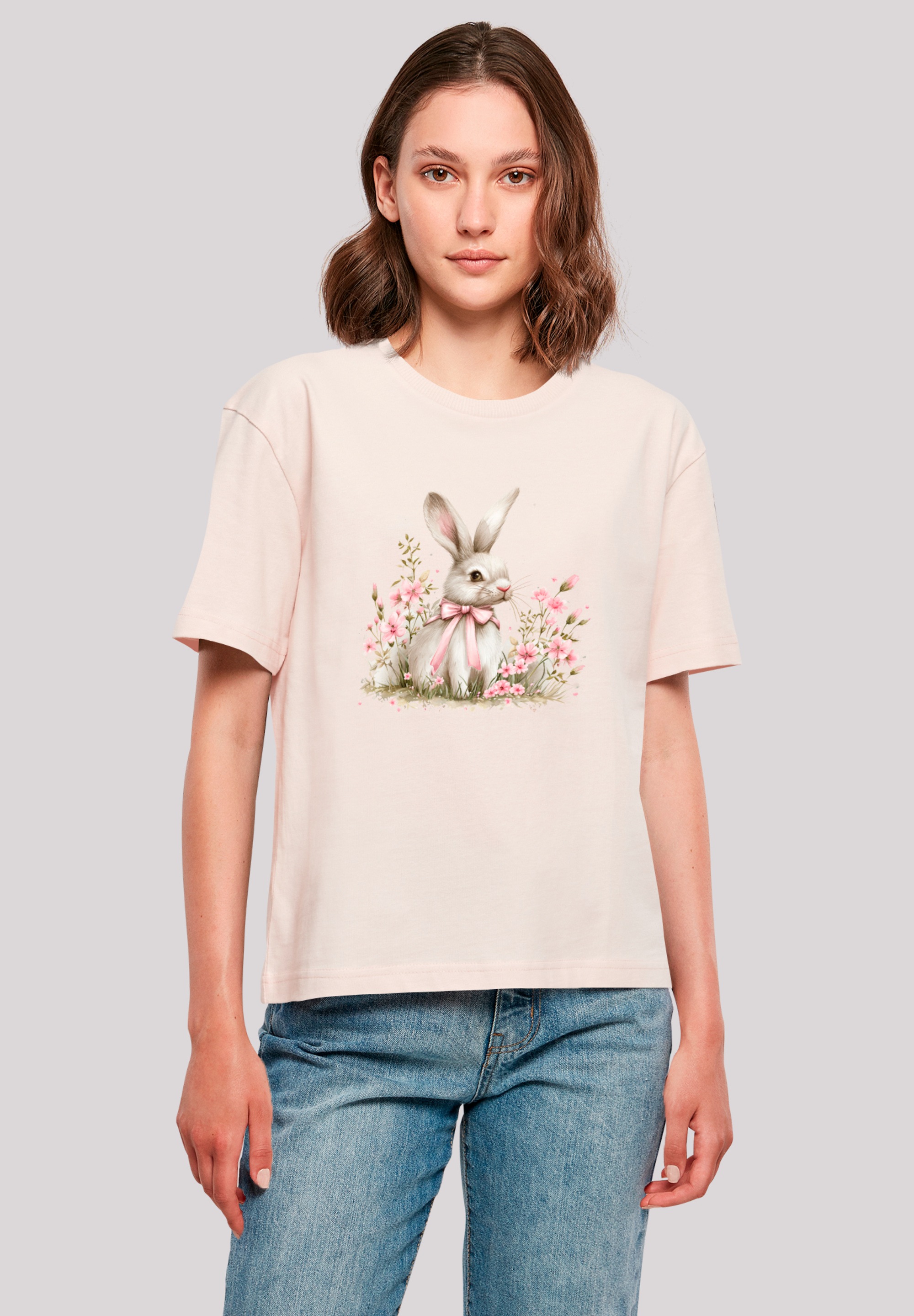 T-Shirt F4NT4STIC "Vogelnest Blumen", Damen, Gr. XL, pink, Obermaterial: 100% Baumwolle, oversize, Rundhals, ohne Bündchen, Shirts T-Shirt, Premium Qualität