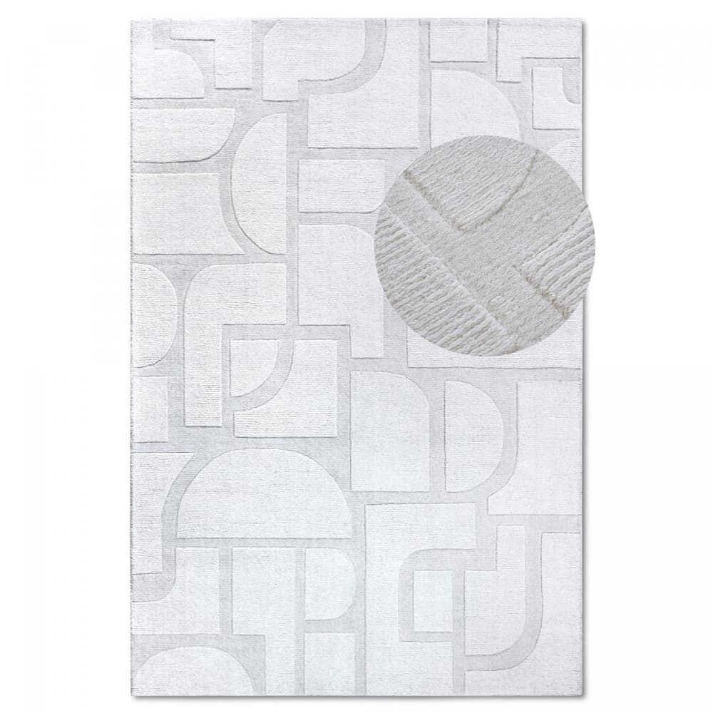 Tapis salon 120x170cm Ecru Laine Géométrique