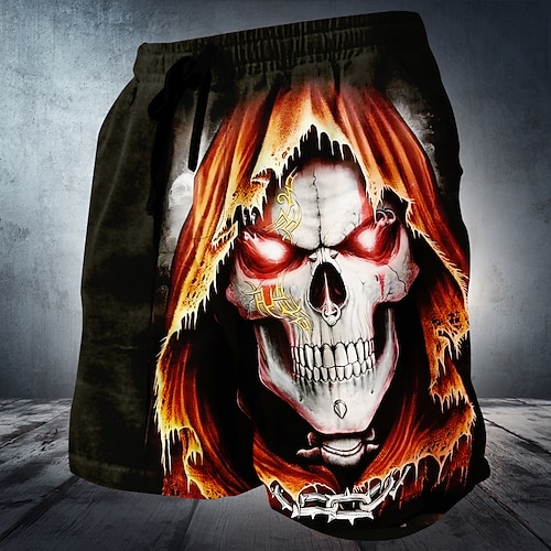 Per uomo Teschio Illusione ottica Morte Pantaloncini da tuta Shorts da Spiaggia Pantaloncini in spugna Misura del girovita medio Stile gotico oscuro Vacanza Ferie Stampa 3D con tasca laterale