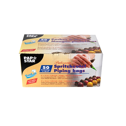 PAPSTAR 50 Spritzbeutel 21 cm x 12 cm transparent "Patisserie" griffig, inkl. 50 Tüllen