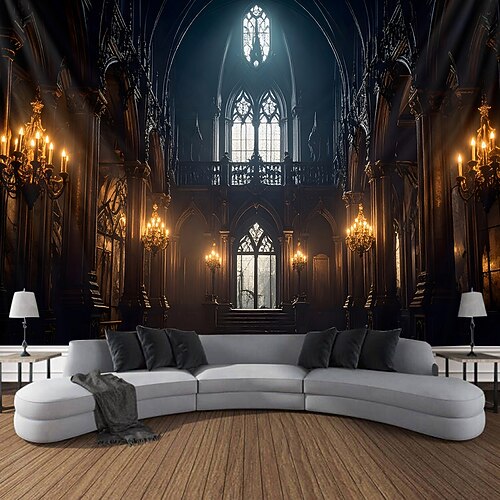 Halloween arazzo Striscioni Coperta Castello 3D Gotico punk oscuro Da serata Dormitorio Sfondi di ripresa Decorazioni Parete Porta Sfondo