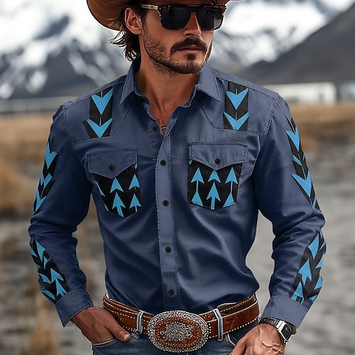 Per uomo Motivo Geometrico Camicia Western Camicia con Bottoni Camicia da cowboy Manica Lunga Vintage Retrò All'aperto Quotidiano Abbigliamento da lavoro Autunno Inverno Collo ripiegato Stampa 3D