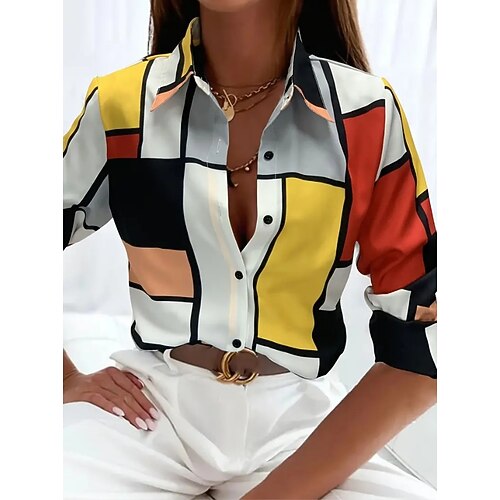 Per donna Camicia Grafico Geometrico Vintage Quotidiano Casual Manica Lunga Colletto a Camicia Top Regolari Quotidiano Ferie Stampato Nero Giallo Rosa Marrone chiaro Marrone Estate Primavera