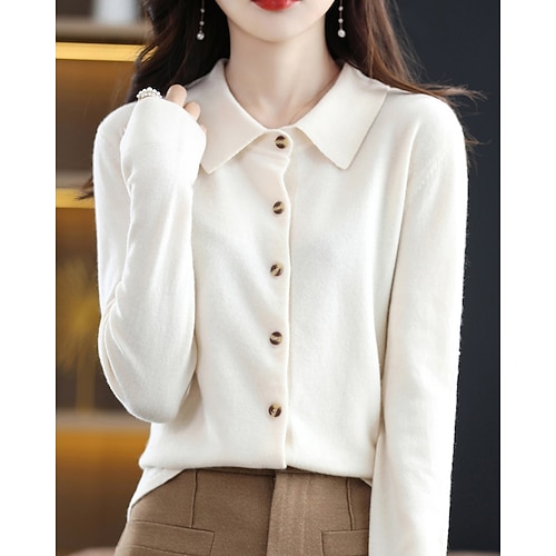 Per donna Blusa Semplice Elegante Casual Manica Lunga Colletto a Camicia Top lunghi Quotidiano Bottoni Blu Bianco Rosa Blu Reale Estate Primavera