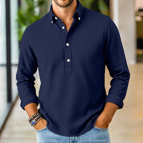 Per uomo Camicia Camicia popover Camicia button-down Camicia casual Blu denim Nero Bianco Blu marino Blu scuro Manica Lunga Semplice Colletto italiano visibile Casuale All'aperto Bottoni Abbigliamento