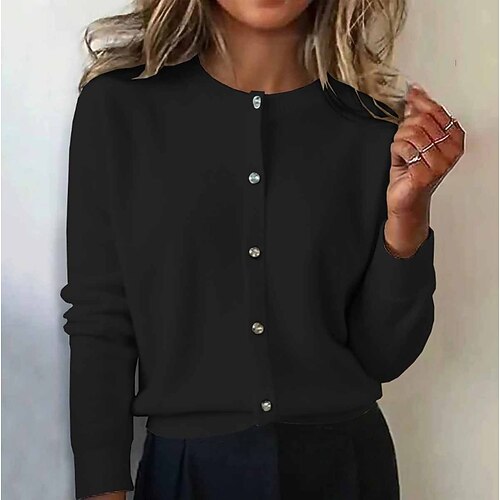 Per donna Blusa Tinta unica Elegante Casual Manica Lunga Girocollo Top Regolari Quotidiano Nero Rosso Blu Verde Cachi Primavera Autunno Inverno