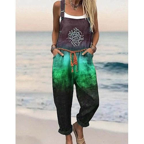 Per donna Tuta Attivo Floreale Senza Maniche Harem Girocollo Tasca Stampato Vacanza Casa Vestibilità comoda Blu Rosso Arancione Estate