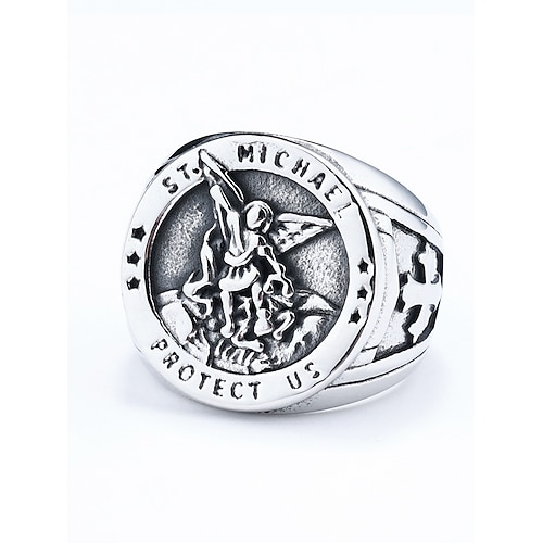 Anello San Michele Proteggici per uomo – anello con sigillo religioso in acciaio inossidabile, gioiello cattolico vintage per la fede, la protezione e l'uso quotidiano