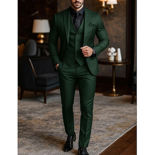 Uomo Casuale Affari Abiti da sposa Bavero classico Nero Borgogna Festa Affari Tinta unita Vestibilità aderente 3 pezzi Monopetto Due Bottoni