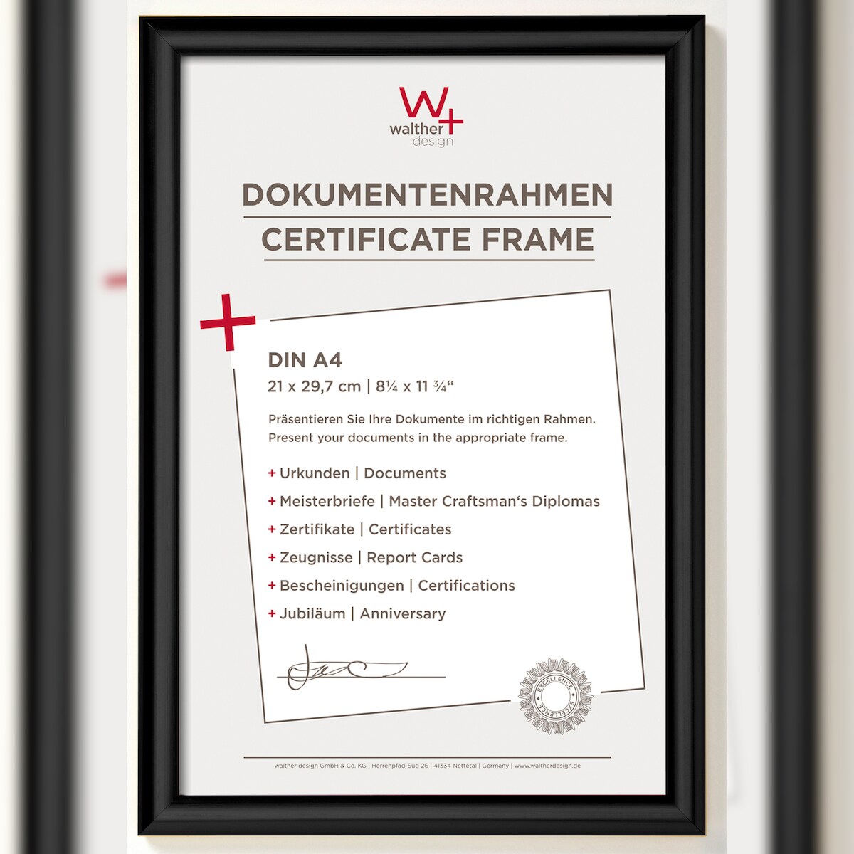 walther + design Trendstyle Kunststoff Bilderrahmen, schwarz, 21 x 29,7 cm