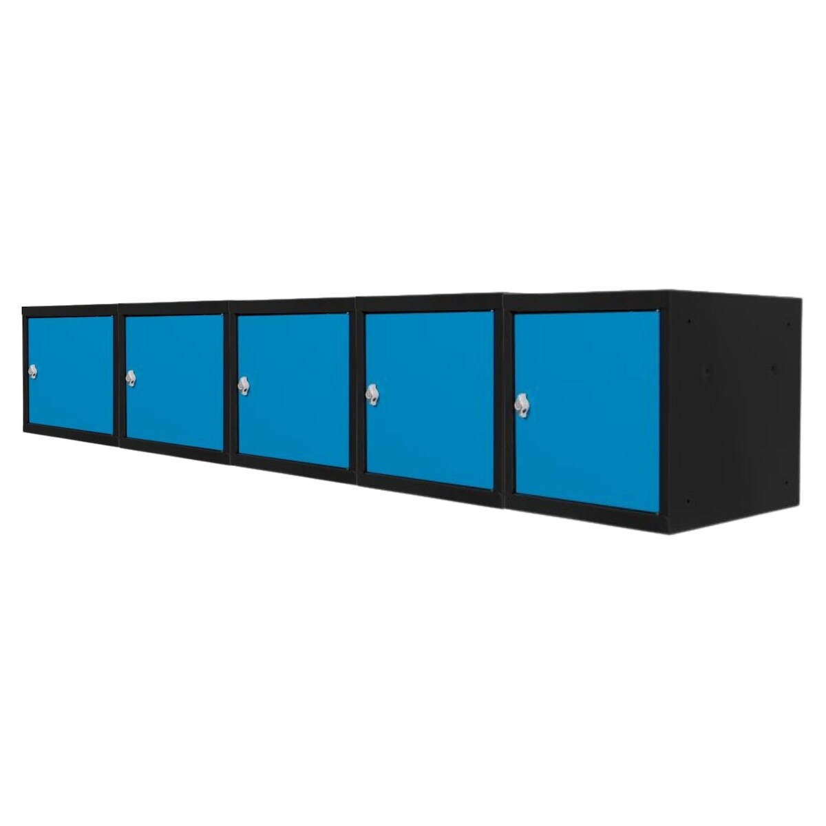 Proregal Mega Deal | 5x Schließfachwürfel Blocky mit Drehriegelschloss für Vorhängeschloss | HxBxT 40x40x40cm | Anthrazit/Lichtblau