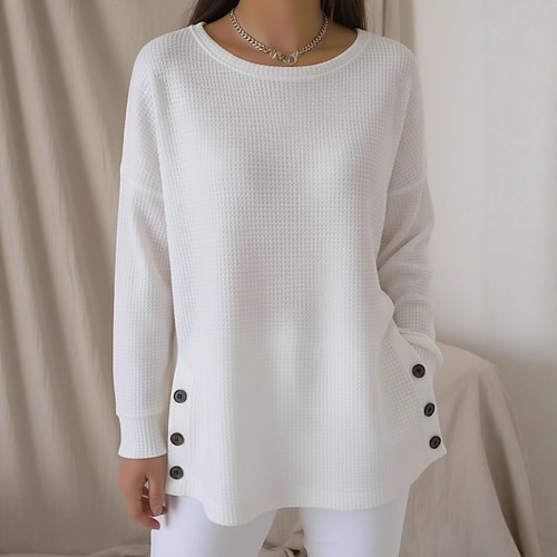Per donna Camicia Elegante Vintage Sport Manica Lunga Girocollo Top lunghi Quotidiano Ferie Uscire Bottoni Bianco Rosso Blu Primavera Autunno Inverno
