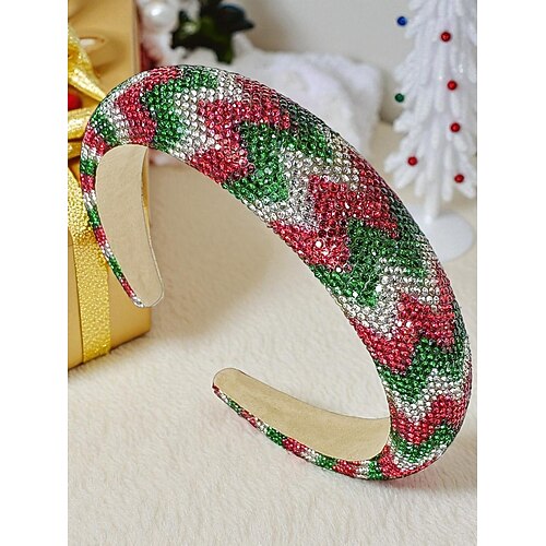 Fascia per capelli natalizia da donna con perline, accessorio per capelli a zigzag rosso-verde per le feste natalizie abiti invernali