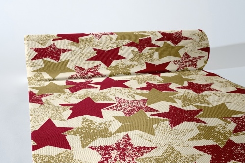 MANK Tischläufer Airlaid Levi in Gold-Bordeaux, 40 cm x 24 m , 1 Stück - Weihnachten Sterne
