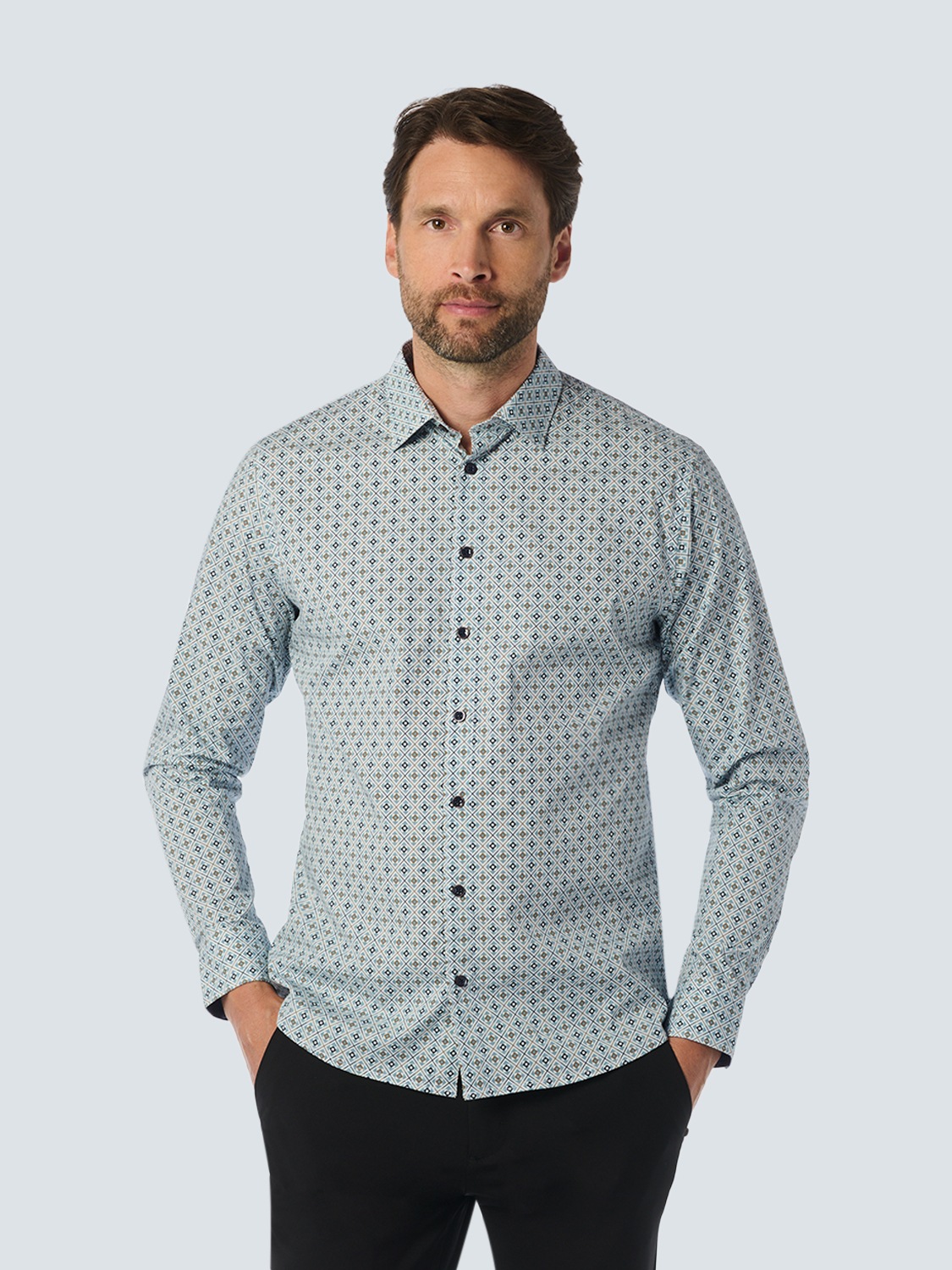 Langarmhemd NO EXCESS "No Excess Stilvolles Hemd mit Allover-Muster", Herren, Gr. L, Normalgrößen, blau, 97% Baumwolle, 3% Elasthan, casual, normal, Hemden