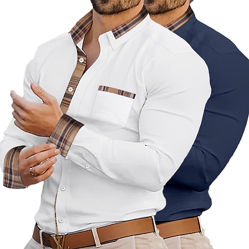 Per uomo Camicia Camicia elegante Camicia casual Camicia con Bottoni Blocco di colori Formale Affari Bianco rosa Bianco nero Pink Blu Bianco blu Manica Lunga Bavero Primavera Autunno Tutte