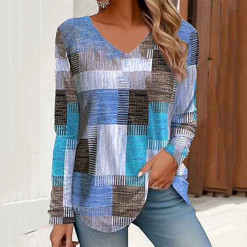 Per donna Blusa Blocco di colori Elegante Western Y2K Manica Lunga Scollo a V Top Regolari Ferie Uscire Patchwork Stampato Giallo Rosa Rosso Blu Verde Estate Primavera Autunno