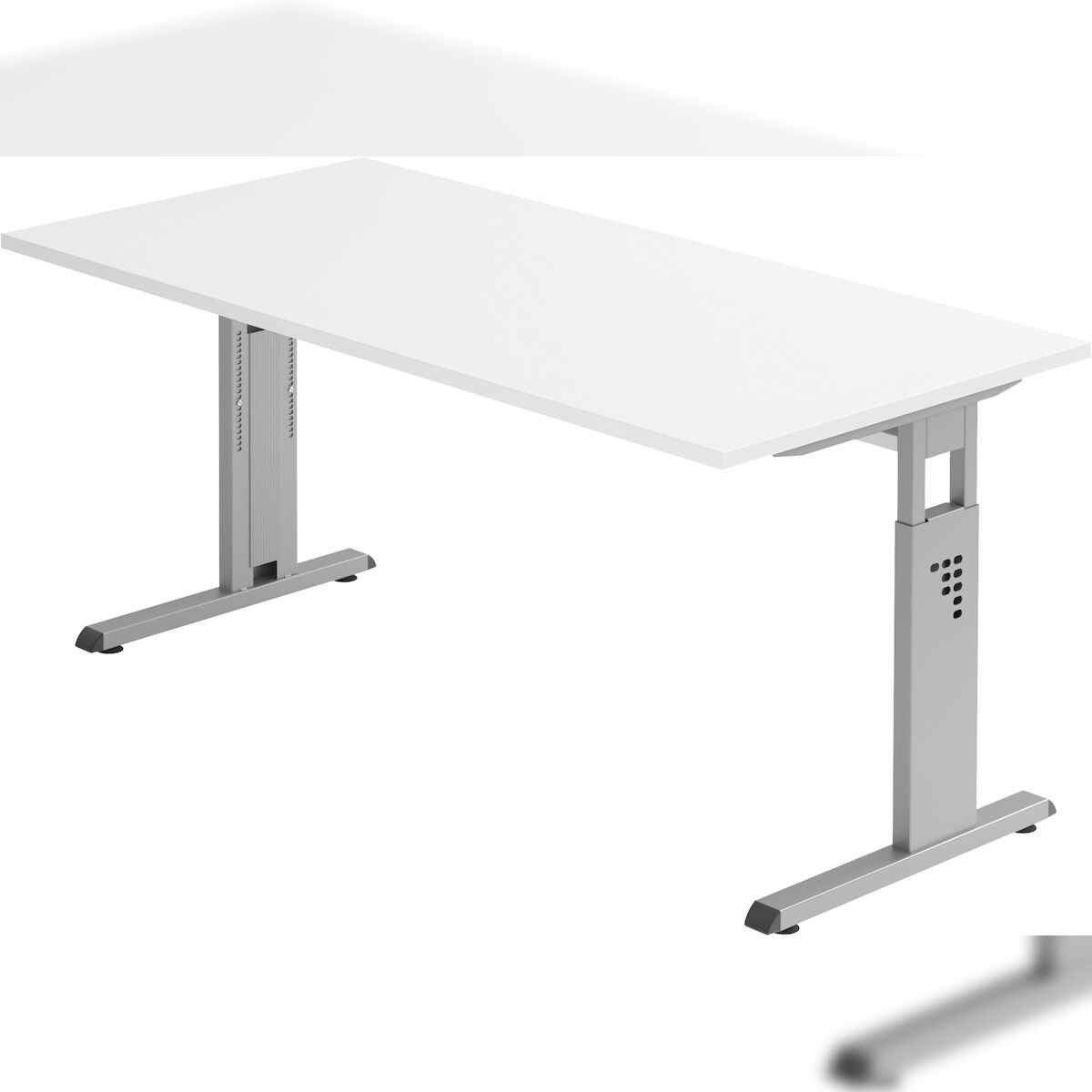 bümö höhenverstellbarer Schreibtisch O-Serie 160x80 cm in weiß, Gestell in Silber - PC Tisch für's Büro manuell höhenverstellbar, Computertisch