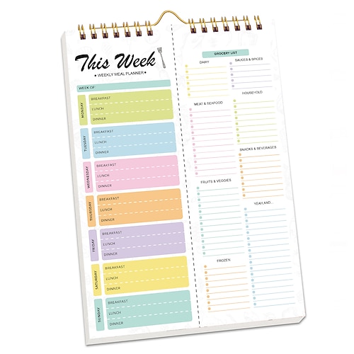 quaderno per pianificare i pasti 8,5x5,8 pollici, 52 fogli magnetici, pasti a doppia elica lista della spesa, pianificatore di menu da parete per la giornata piano settimanale