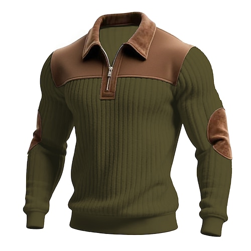 Per uomo Maglia Felpa con cappuccio Felpa con zip corta Maglia a coste Aalbicocca Nero Bianco Verde militare Colletto Mao Semplice Patchwork Testurizzato Casuale Quotidiano Sport Outdoor Vintage