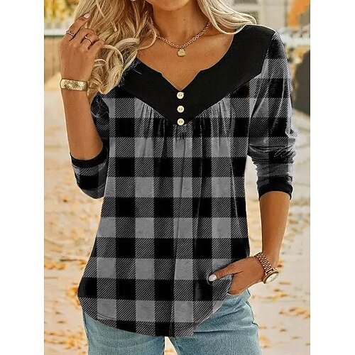 Per donna Camicia Ombre Grafico Plaid Elegante Bohemien Vintage Manica Lunga Scollo a V Top Regolari Lavoro Quotidiano Uscire Bottoni Rosso Blu Arancione Grigio Primavera Autunno Inverno