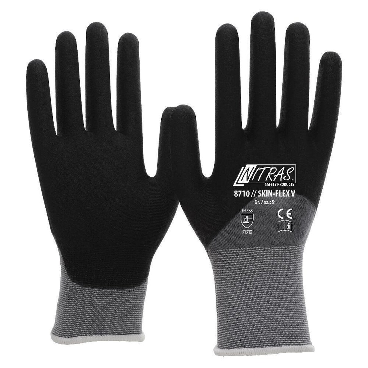 AS Arbeitsschutz Arbeitshandschuhe | 12 Paar Nitras Skin Flex V Strickhandschuhe | Gr. 7