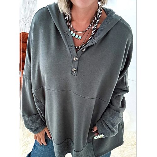 Per donna Camicia Tinta unica Essenziale Informale Manica lunga A V Top regolari Giornaliero Collage Bottoni Nero Rosso Grigio Autunno Inverno